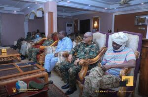 وأظهرت مقاطع مصورة من الاجتماع حالة من الحماس بين الضباط والقادة المشاركين، فيما تعهّد البرهان بالمضي “بقوة وعزيمة لتحقيق النصر القريب وتحرير البلاد من دنس التمرد وتأمين حدود الدولة السودانية”.