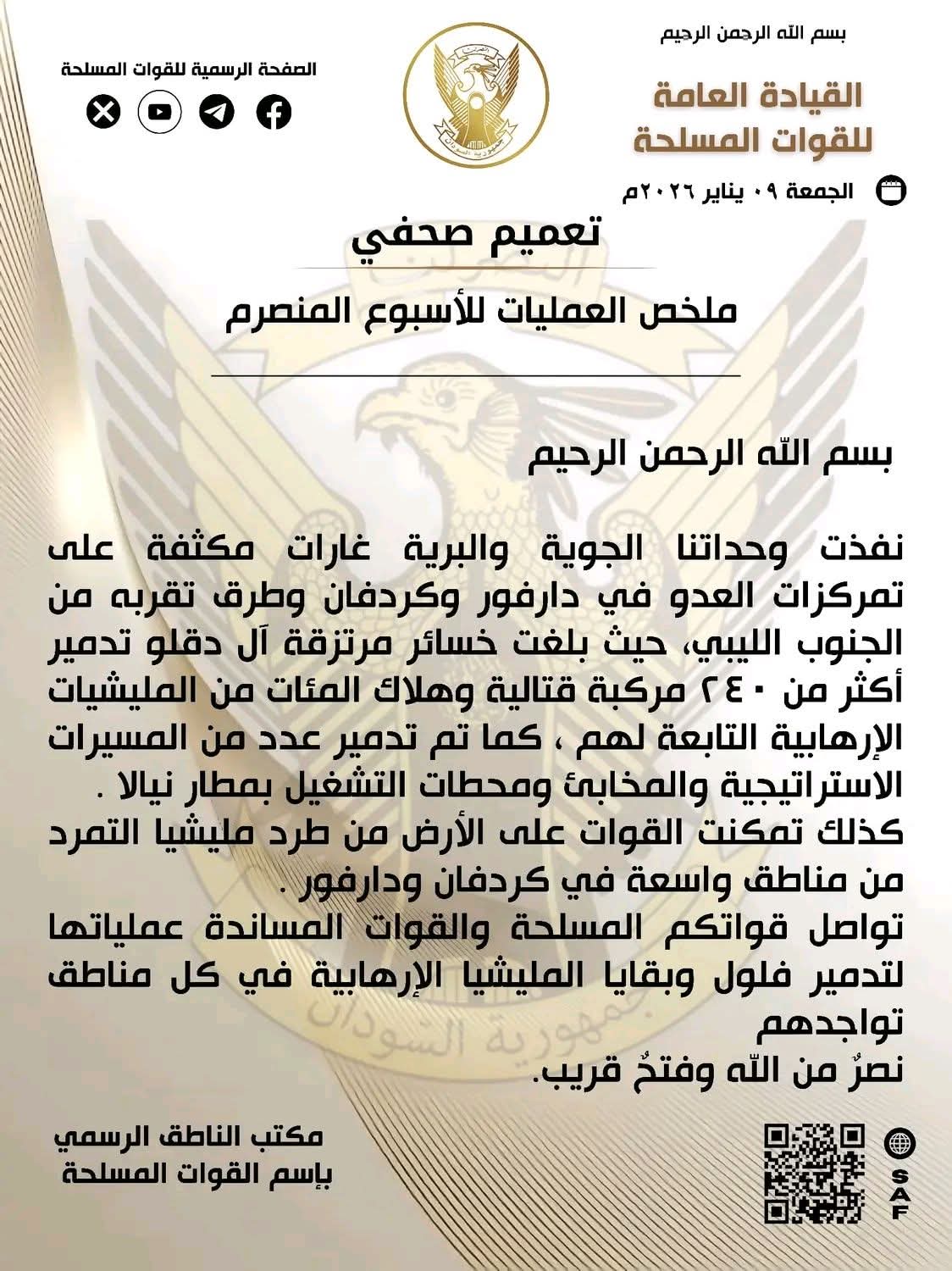 تعميم صحفي لـ القوات المسلحة السودانية