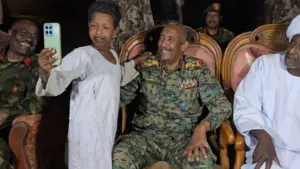 أثارت صورة متداولة لطفل سوداني يلتقط صورة “سيلفي” مع رئيس مجلس السيادة والقائد العام للقوات المسلحة الفريق أول ركن عبد الفتاح البرهان تفاعلاً واسعاً على منصات التواصل الاجتماعي.