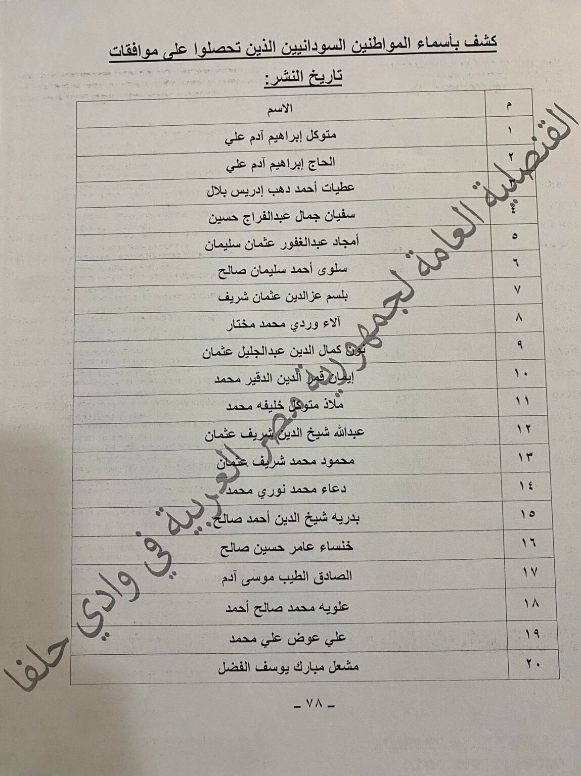 أعلنت القنصلية العامة لجمهورية مصر العربية في وادي حلفا صدور موافقات منح التأشيرات لعدد من المواطنين السودانيين، ودعت أصحاب الأسماء الواردة في الكشف المرفق إلى تسليم جوازات سفرهم شخصياً يوم الأربعاء 1 أبريل 2026، من الساعة العاشرة صباحاً حتى الواحدة ظهراً، بمقر القنصلية.